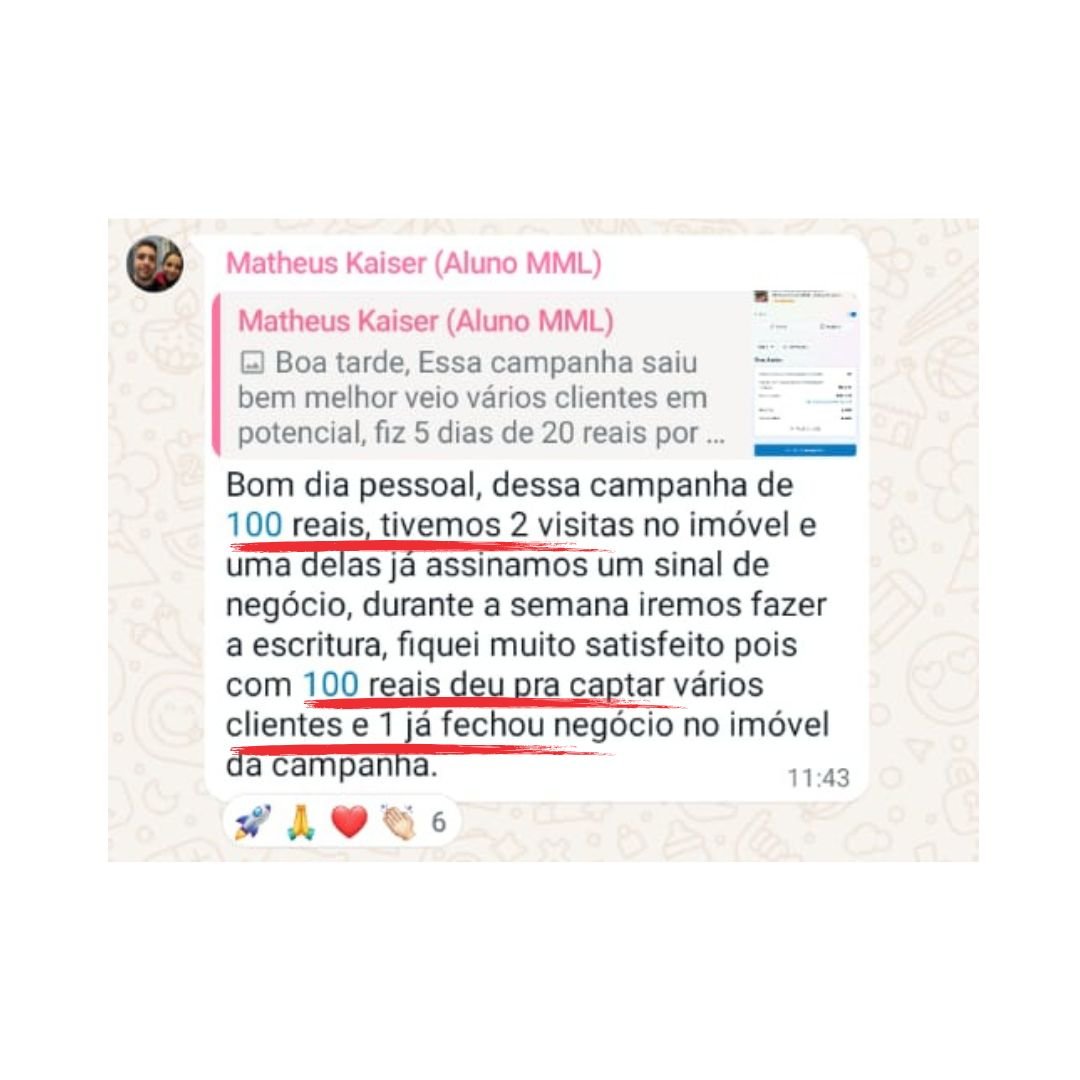 Foram anos em busca de uma solução que realmente funciona para gerar leads realmente qualificados e VENDER TODO OS MESES. Após mais de 8,5 milhões gerenciados em tráfego imobiliário, eu desenvolvi estratégias QUE FUNCIONAM SEMPRE!
